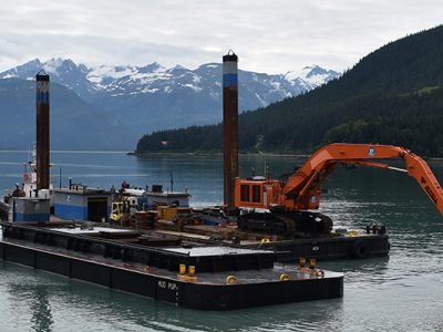 Design-Build installation of a 300-ft long sheet pile cofferdam including dewatering and 60’x135′ pile-supported work trestle and dredge support and disposal of... Learn More